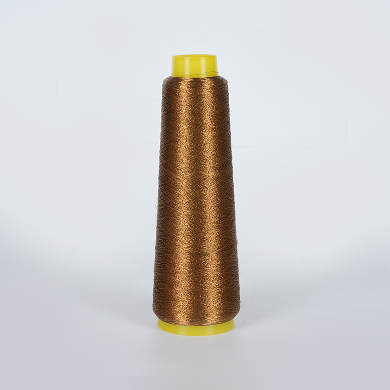 금속화 된 폴리 에스테르 필름 (알루미늄 금속 또는 순수한 은속 화 및 보호 엑스파시 수지 코팅)에 의해 미사일은 폴리 에스테르 또는 나일론 필라멘트 원사로 비틀었다. 이 원사의 전문 분야는 매우 부드럽고 매우 부드럽습니다. 고급 직물, 의류 장식, 니트웨어, 양말 공예 ect에 널리 사용됩니다 .